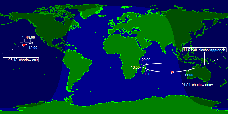 Click on a table row to load a finder chart corresponding to that time, or alternatively, you can go straight to a finder chart for a time near closest approach by clicking here.