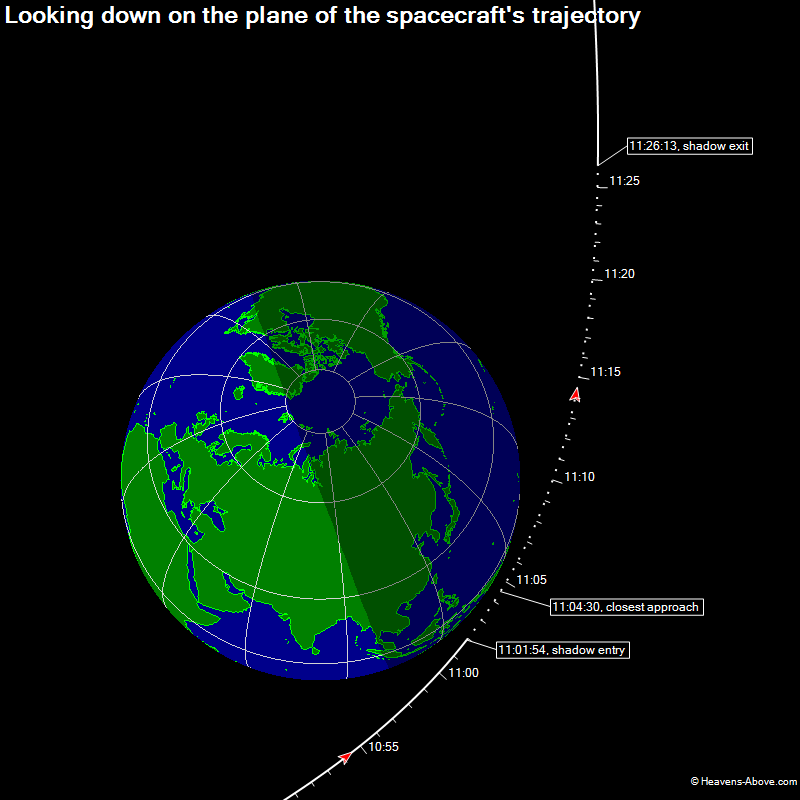 Click on a table row to load a finder chart corresponding to that time, or alternatively, you can go straight to a finder chart for a time near closest approach by clicking here.