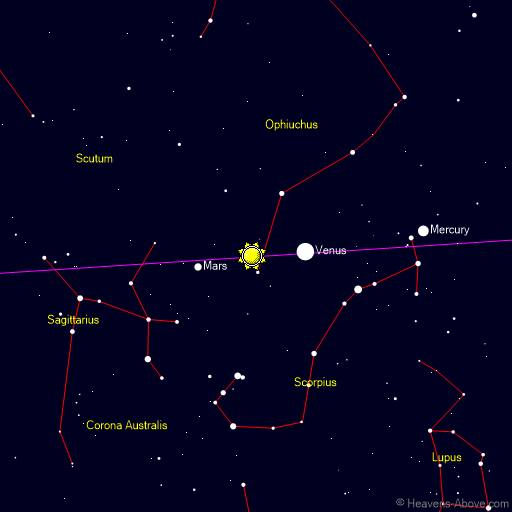 | Astronomical twilight begins: | 05:48 | -18.0° | 105° | | Nautical twilight begins: | 06:28 | -12.0° | 112° | | Civil twilight begins: | 07:09 | -6.0° | 119° | | Sunrise: | 07:47 | -0.8° | 127° | | Maximum altitude: | 11:51 | 16.8° | 180° | | Sunset: | 15:55 | -0.8° | 233° | | Civil twilight ends: | 16:33 | -6.0° | 241° | | Nautical twilight ends: | 17:15 | -12.0° | 248° | | Astronomical twilight ends: | 17:54 | -18.0° | 255° | | Minimum altitude: | 23:51 | -63.2° | 360° |