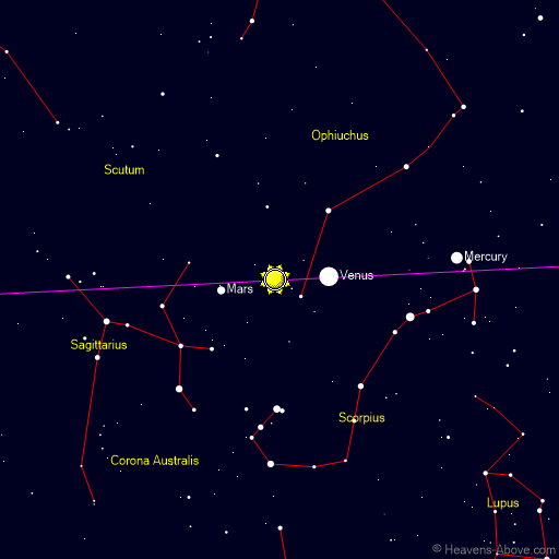 | Astronomical twilight begins: | 05:45 | -18.0° | 105° | | Nautical twilight begins: | 06:24 | -12.0° | 112° | | Civil twilight begins: | 07:04 | -6.0° | 119° | | Sunrise: | 07:42 | -0.8° | 126° | | Maximum altitude: | 11:49 | 17.5° | 180° | | Sunset: | 15:55 | -0.8° | 234° | | Civil twilight ends: | 16:33 | -6.0° | 241° | | Nautical twilight ends: | 17:14 | -12.0° | 248° | | Astronomical twilight ends: | 17:52 | -18.0° | 255° | | Minimum altitude: | 23:49 | -64.1° | 0° |
