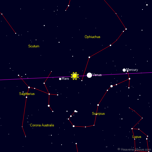 | Astronomical twilight begins: | 05:58 | -18.0° | 105° | | Nautical twilight begins: | 06:38 | -12.0° | 112° | | Civil twilight begins: | 07:20 | -6.0° | 120° | | Sunrise: | 07:59 | -0.8° | 127° | | Maximum altitude: | 11:59 | 16.0° | 180° | | Sunset: | 15:59 | -0.8° | 233° | | Civil twilight ends: | 16:38 | -6.0° | 240° | | Nautical twilight ends: | 17:20 | -12.0° | 248° | | Astronomical twilight ends: | 18:00 | -18.0° | 255° | | Minimum altitude: | 23:59 | -62.6° | 360° |